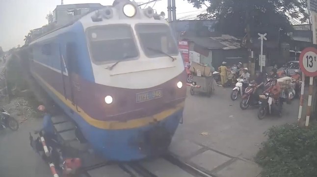Start your day informed with Metro's News Updates newsletter or get Breaking News alerts the moment it happens.The man was clipped by the train as he avoid safety barriers and risked jumping the track (Picture: Jam Press)The driver crashes into fellow bike riders waiting behind the barriers on the other side (Picture: Jam Press)Accidents are frequent. In February a lorry driver was killed after his vehicle was hit by a train travelling through the city.On March 8,a motorbike rider was killed after trying to circumvent the safety barrier at a crossing.Hanoi’s famous Train Street carries railway vehicles several times a day on its single-track line.The narrow road is lined with shops and homes and is a popular attraction for visitors looking for an iconic photo grab.The distinctive railway line forms part of the north-south route through the city and was built under French colonial rule.The cyclist was knocked to the ground as the train passed by (Picture: Jam Press)Tourists can view the railway while sitting at the street’s many cafes,with many advertising scheduled passing times to spur business while advising customers to move their seats in as a train approaches.Between 2019 and 2023 it was closed to tourists by authorities citing safety concerns,with several visitors reported to have narrowly missed trains weaving through the street.Officials are set to raise the fine for ignoring railway barriers to six million dong (£170) for cyclists and20 million dong (£564) for drivers of other vehicles.Get in touch with our news team by emailing us at .