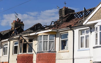 The scene after the fire on a residential street in Gosport,Hampshire