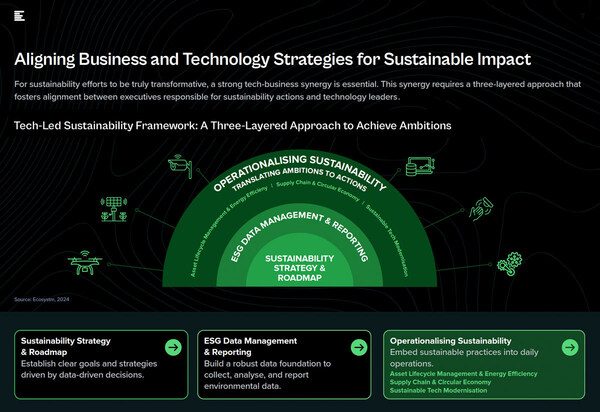 "Organizations that embrace tech-led sustainability decisions can turn sustainability from a cost centre into a value driver,ensuring long-term business success while leaving a positive environmental legacy," saidSash Mukherjee,VP Industry Insights,Ecosystm. "By following the three-layered tech-led sustainability framework and the checklist in this guide,Asia Pacific leaders can create a compelling,data-driven sustainability narrative that inspires action,manages risks,and builds stakeholder trust."