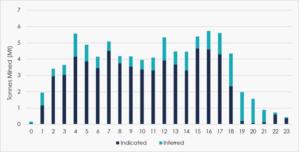 The PEA demonstrates the potential for robust economics,highlighted by a combined after-tax NPV8% of $2.9 billion (US$2.2 billion) and after-tax IRR of 34%. The Project's mine life is projected at 24 years,based on a total extracted Mineral Resource of 66% of total resources defined at CV5,generating significant net cash flows with capital payback achieved in 3.6 years.