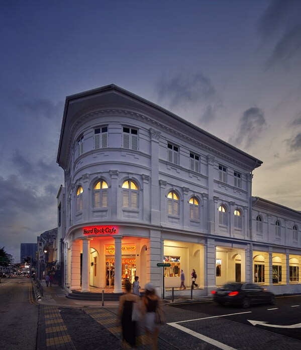 The facade of Rock Shop George Town,Penang in the evening.