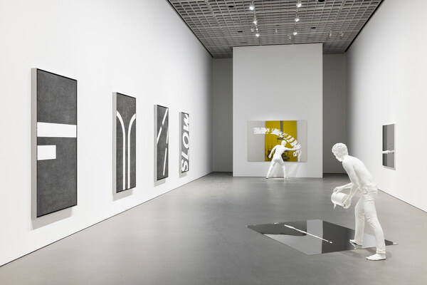 Spaces,the first-ever survey of Elmgreen & Dragset's spatial practice,presents five immersive space-specific installations that feature a combination of existing works and new works by the artists. The family house,titled Shadow House,extends the artist duo's investigation on the idea of home by presenting an actual architectural entity. The public swimming pool,the leitmotif of Elmgreen & Dragset's practice is a remark on disappearing communal civic spaces. The Cloud,the high-end restaurant may serve as a commentary on how the culinary experience are now consumed on both a sensorial and digital level. During regular opening hours,it will appear deserted except for a lifelike figure of a young woman seemingly in the middle of a FaceTime conversation. The industrial-style kitchen hints at the conversion between the kitchen and a laboratory,where molecular gastronomy gains popularity in fine dining business. The studio space shows the artists' white-lacquered figural sculptures in various poses of creative art-making.