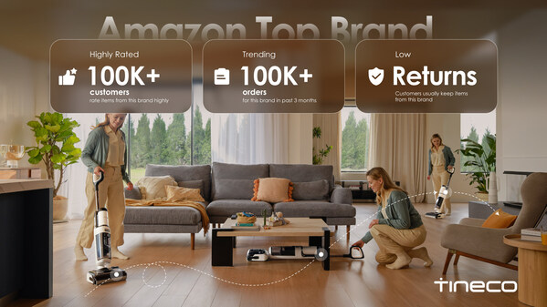 SEATTLE,Sept. 13,2024 --Tineco,a global leader in smart home appliances,is excited to announce its recognition by Amazon as one of the top brands. Amazon has awarded Tineco three prestigious tags: "Highly Rated" for over 100K customer reviews,"Trending" with 100K+ orders in the past three months,and "Low Returns" for high consumer satisfaction and low return rates. This recognition highlights Tineco's dedication to quality,innovation,and customer satisfaction.