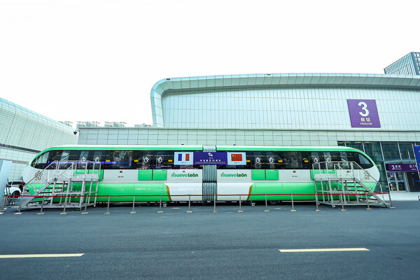 In the outdoor exhibition area,Alstom,a leading French company,will display a full-scale model of its straddle-type monorail. The vehicle,approximately 26 meters long and weighing around 30 tons,is part of the urban rail transit system. It can reach speeds of up to 80 kilometers per hour. It has a construction period half that of a metro system and costs only a third of a metro's total expense.