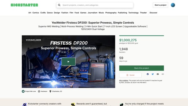 The launch of the Firstess DP200on Kickstarter has been a resounding success. From the moment it went live,the welding community rallied behind the campaign,drawn in by the machine's powerful capabilities and competitive pricing. In just five hours,the DP200 crossed the $1 million mark in sales—a remarkable achievement that underscored the demand for high-quality,affordable welding equipment. The overwhelming response from backers demonstrates the growing excitement around the DP200 and its potential to transform the welding experience for a wider audience. As of today,the campaign has raised over $2.4 million.
