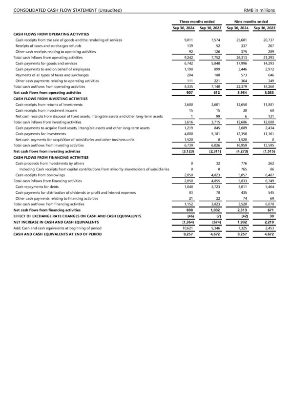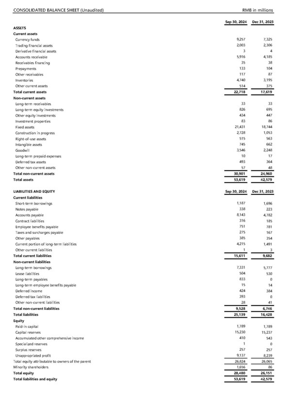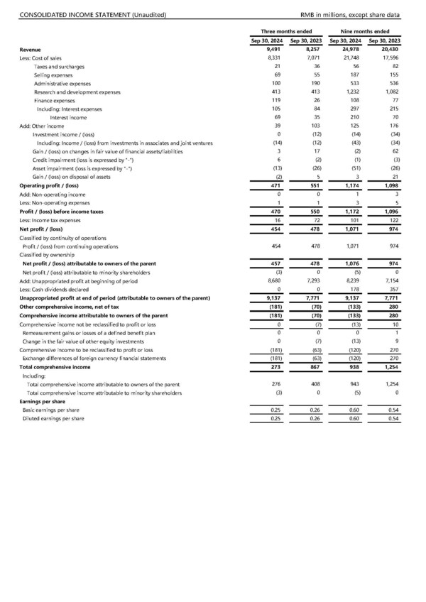 Earnings per share was RMB 0.60,as compared to RMB 0.54 in Q3 YTD 2023.