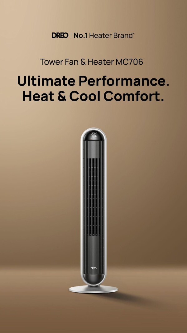 CLIFTON,N.J.,Nov. 8,2024 -- DREO,the No.1 fan & heater brand in the U.S.,proudly unveils the MC706—a powerful 2-in-1 Tower Fan & Heater that brings seamless heating and cooling for year-round comfort. With over 3 million heaters and over 3.5 million tower fans sold in less than three years,DREO has firmly established itself as the leading choice for home comfort solutions. The MC706,available starting November 8 on dreo.com,Amazon,and select retailers,exemplifies DREO's commitment to comfort,performance,and innovation.