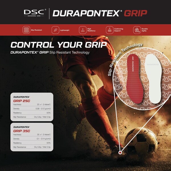 PORTLAND,Ore.,Dec. 4,2024 -- Dahsheng Chemical (DSC®),a leading performance foam manufacturer,announces the launch of its latest high-performance innovation,DURAPONTEX® Grip,designed with strong grip and slip-resistant insole technology for optimal athlete control,agility,and performance.
