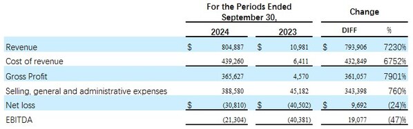For the year ended September 30,2024,total operating costs was $439,260 and operating expenses were $388,580,as a group listed in the U.S. in the current financial year,incurring more listing-related and start-up costs,the professional fees and related expenses was $142,401,this resulted a net loss of $30,810 for the year ended September 30,and a decrease in EBITDA to a loss of $21,304,a 47% decrease in loss.