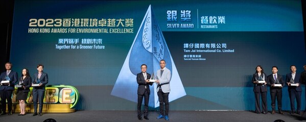 The Hong Kong Awards for Environmental Excellence,hailed as the environmental industry's equivalent of the Oscars,is led by the Environmental Campaign Committee alongside the Environment and Ecology Bureau and in conjunction with nine organisations. Based on three judging criteria,namely green leadership,programme and performance,and partner synergy,the award aims to honour organisations with outstanding performance in implementing comprehensive and excellent environmental management. As first-time participants of the competition,the Group's flagship brands TamJai Yunnan Mixian ("TamJai") and TamJai SamGor Mixian ("SamGor") stood out among 3,500 participating organisations and received the Silver Award and the Certificate of Merit respectively in the restaurants category,reaffirming the Group's commitment to practising and promoting green and sustainable development. In addition,the Group was recognised by the Hong Kong Green Shop Alliance Award for the second year in a row,with "TamJai" and "SamGor'" winning the "Excellent Green Practices Award – Waste Management" this year.The Group also received the Outstanding ESG Awards (Listed Company) - Platinum Awards at the ESG Achievement Awards 2023/2024,organised by the Institute of ESG & Benchmark (IESGB).