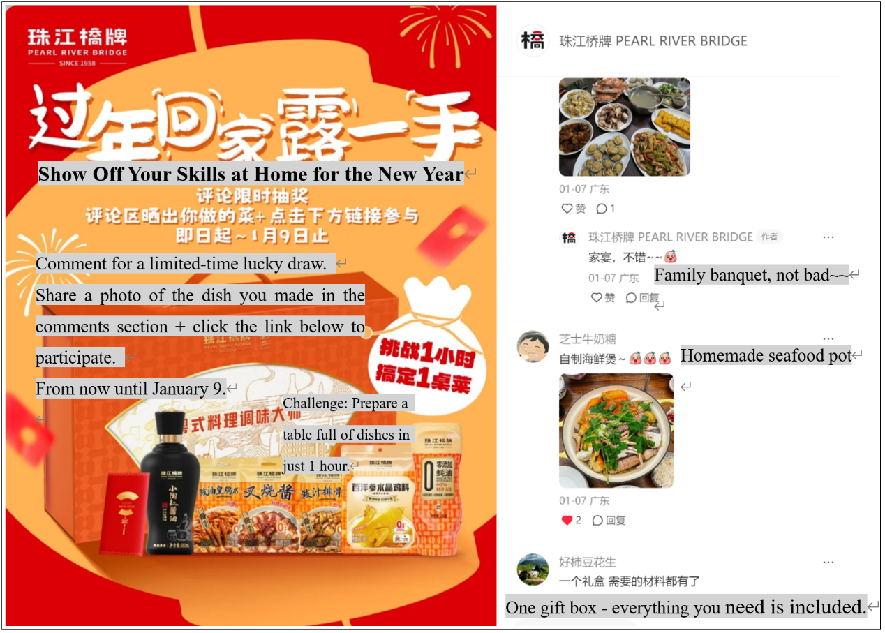 The delicious dishes showcased on Chinese social media are a testament to the unique charm of this product! The "One Sauce, Many Dishes" series developed by Pearl River Bridge is a unique innovation that allows anyone to prepare a "Cantonese signature dish" in just 20 minutes, reflecting its commitment to Chinese culinary culture. During this campaign, I discovered that many netizens who were not adept at cooking were encouraged to step into the kitchen and try to prepare a sumptuous New Year's Eve dinner for their families, making this campaign both meaningful and interesting.