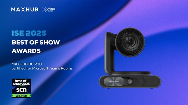 BARCELONA,Spain,Feb. 12,2025 -- MAXHUB,a global leader in integrated commercial display and unified communications solutions,has achieved a significant milestone at ISE 2025. The company's latest Microsoft Teams Rooms-certified innovations — the MAXHUB XBoard V7 Interactive Display for Teams Rooms and the MAXHUB UC P30 Intelligent Dual-Eye Camera — have been awarded the prestigious "Best of Show Award," further solidifying their leadership in advanced meeting room technology.