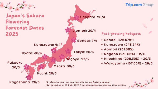 SINGAPORE,Feb. 26,2025 -- As cherry blossoms begin to bloom as March approaches,travellers seeking a less-crowdedsakura spotting experience are flocking to lesser-known cities in Japan to get their flower fix. While the Japanese cherry blossomseason remains a top draw,this year,bookings for off-the-beaten-path and alternative locations beyond Japan are seeing significant growth,reflecting the rising demand for more peaceful and unique experiences in the heart of spring.