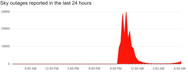 At its peak last night,some 30,000 people were struggling to sue Sky TV (Picture: downdetector.co.uk)