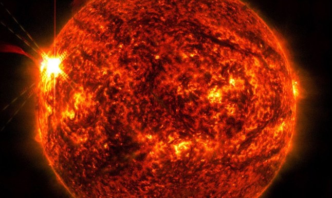 The bright flash on the left is a solar flare on May 14 (Picture: NASA/SDO/SWNS)