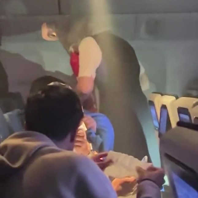 Passengers cover their mouths with blankets and pillows as thick smoke fills the cabin (Picture: Viral Press)