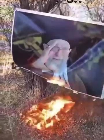 The young man set the picture of the Iranian supreme leader on fire (Picture: Instagram)