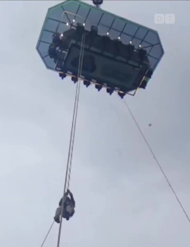 Diners had to scale down a 150-foot-long rope (Picture: Kerala Fire and Rescue Services)
