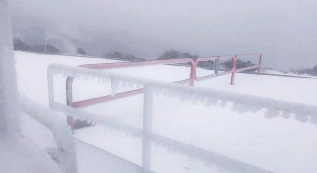 Ice-crusted road barriers in Tenerife after Storm Therese (Picture: Tenerife Island Council)