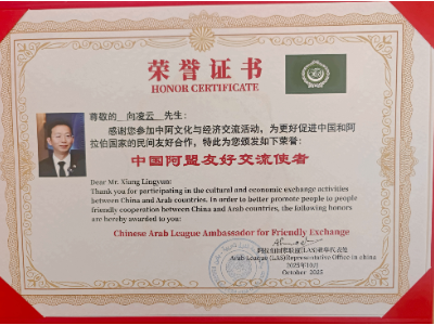Arab League Mission in China Presents Honorary Title to Dr. Lingyun Xiang